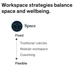 Workplace strategy is becoming a key tool for improving employee engagement and retention. It includes several categories: